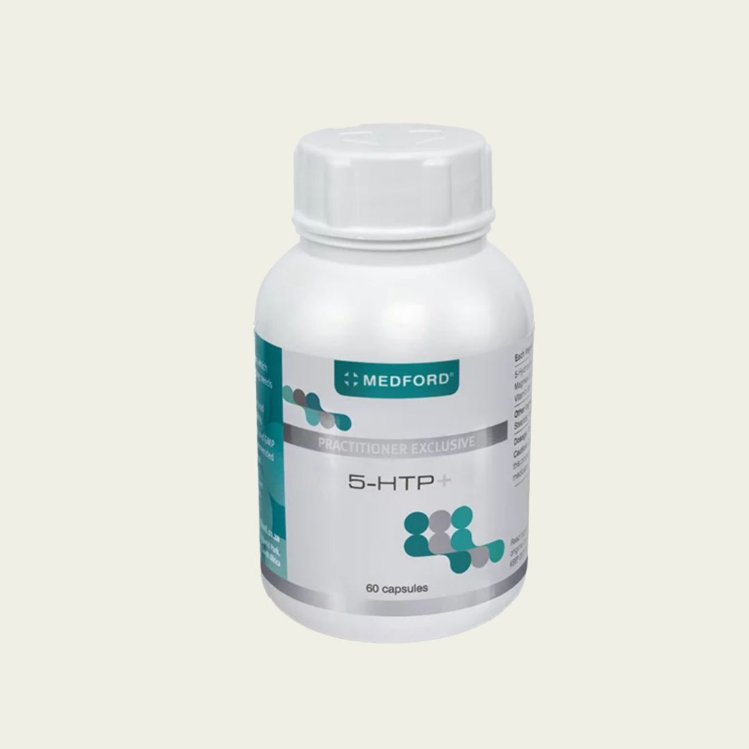 Medford 5-HTP+ (NAPPI: 716831/001) is a prescription supplement with 5-HTP, vitamin B6, and magnesium to support serotonin production, promote better mood, aid sleep, and reduce cravings. Prescription required.